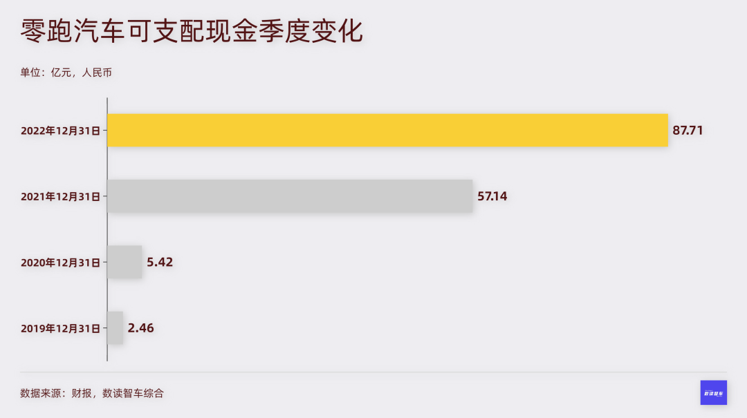 积极的信号是,零跑刚上市,现金储备有明显提升,截至期末有87.7亿元现金、现金等价物及受限制现金,比上一财年末增加了30.6亿,尚且足以支撑2023年的冲量。