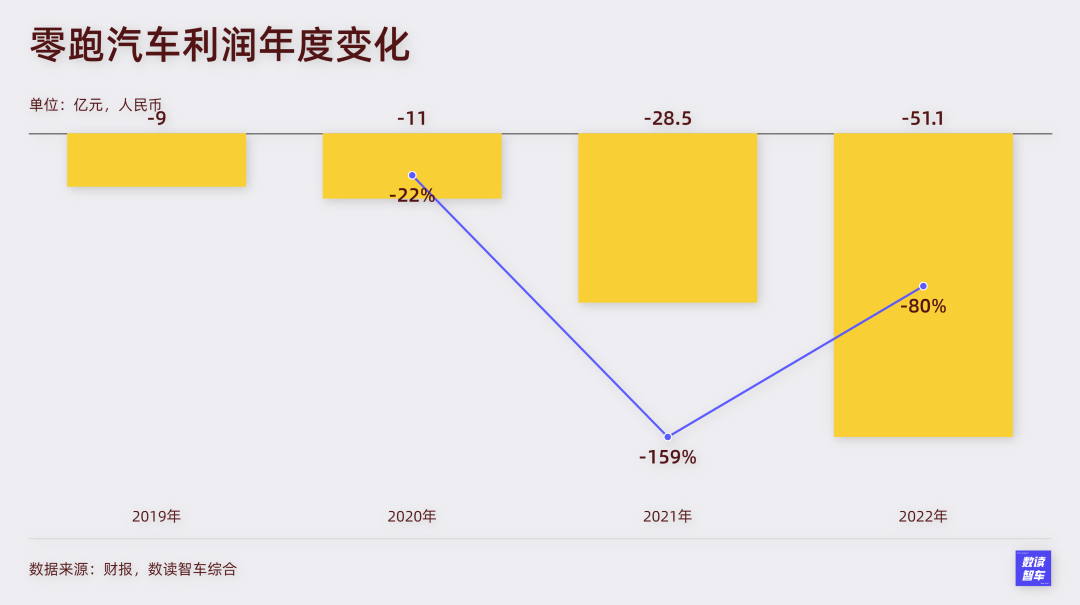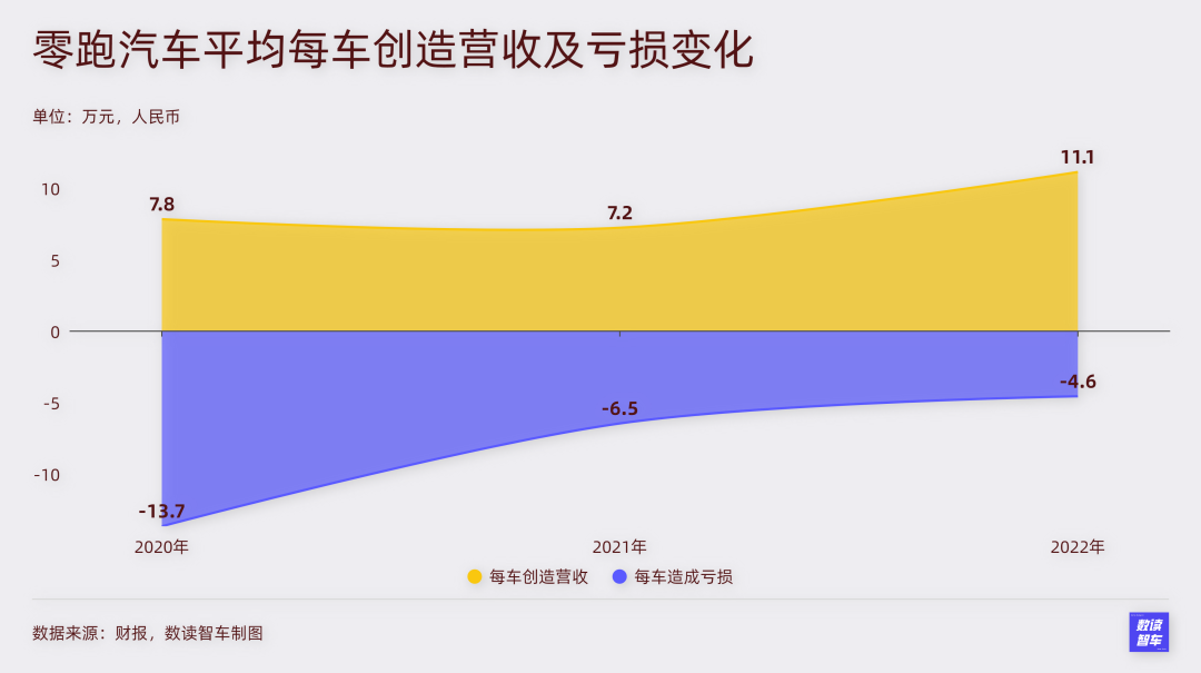 关键的是,虽然2022年的相关指标有所改观,但零跑每辆车仍然亏4.6万,整体亏损幅度还在扩大,毛利率仍然是负值。