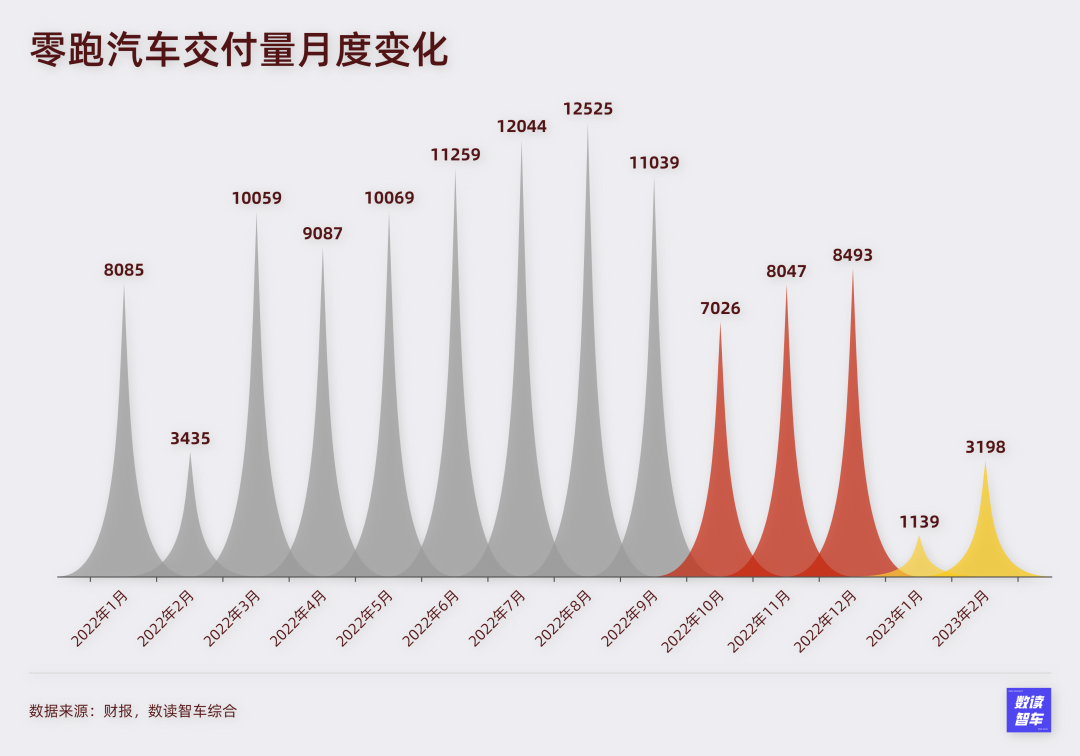 更为扎眼的是今年1月,零跑只交出了1139辆的惨淡成绩单。2月也只有3198辆。在财报中,零跑表示,公司在进行车型迭代,主要完成了2023款车型的SOP及产线导入。
