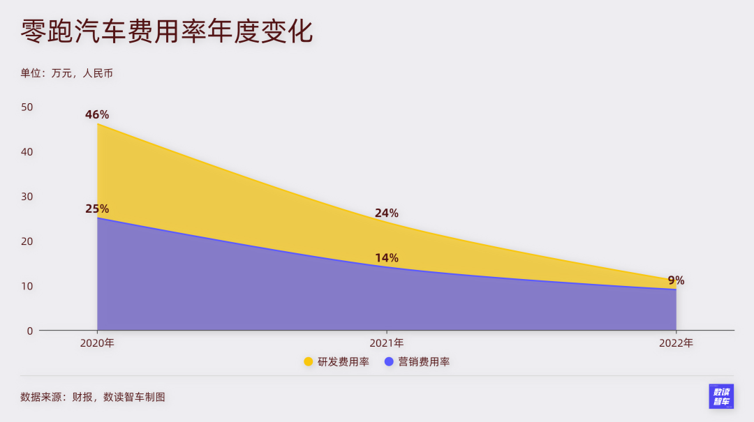 另一方面,控制费用开支也是一大议题。“无论是研发费用还是市场的投入,这两项我们都花得很少。”2022年,零跑汽车研发费用率降至11%,营销费用率降至9%,这样的费用水平甚至和理想不相上下。