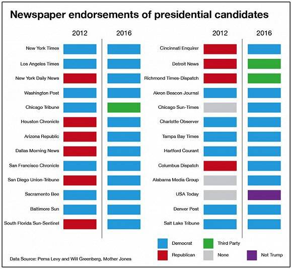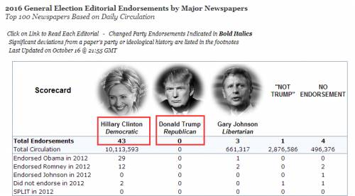 “希拉里动用的最强力武器是企业媒体、出版社。让我们说清楚一件事:在我们国家媒体不再关乎新闻。他们是跟任何说客或金融机构无异的特殊政治利益团体,有着整套的政治议程——其服务对象不是你们,而是他们自己。他们不计成本、不计代价,也不在乎多少人的生活会被毁坏,目标只有一个,把奸诈的希拉里选上台。对他们来说,这是场战争;对他们来说,根本没有出界一说。我们国家正在为生存而挣扎。相信我。”