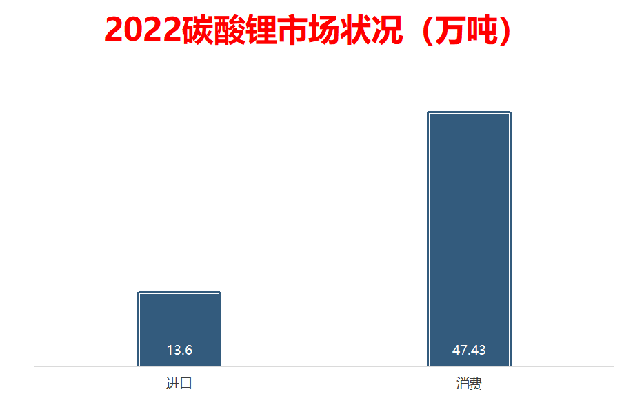 据海关的数据显示,2022年中国碳酸锂进口量为13.6万吨,同比增长68%;2022年我国碳酸锂表观消费量达47.43万吨,碳酸锂进口依赖度为26.2%。
