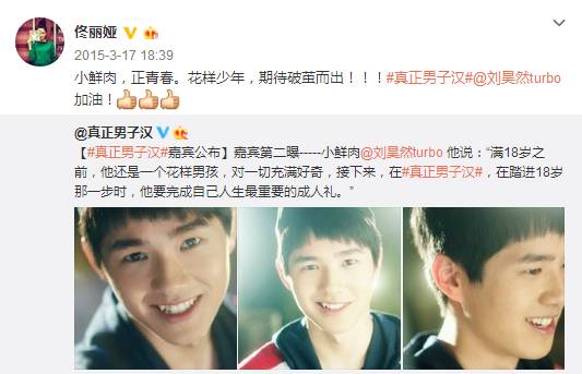 参加过第一季的小兵哥哥刘昊然也给美丫友情站台!