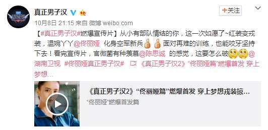 不论是在《真正男子汉》节目组官微,还是在预告视频里,佟丽娅都曾提及自己从小就有一个军人梦。