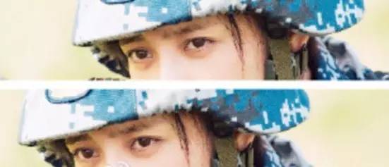 穿上军装的丫丫眼神英气逼人,干净清澈,而且有一种由内而发的坚定。这是军人特有的,令人难以忘怀。