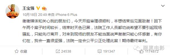 在庭审结束后,宝强也在微博上感谢了所有支持他的人。
