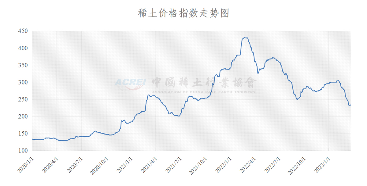 据中国稀土行业协会,3月22日,稀土价格指数报233.6,较前一日上涨1.2点。