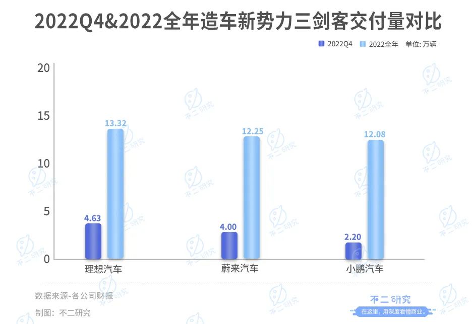 其2022年实现全年交付133246辆,同比增长47.2%;虽然没有达到理想汽车预期目标,但在2022年全年交付数量上,略微领先于蔚来汽车的122486辆和小鹏汽车的120757辆。