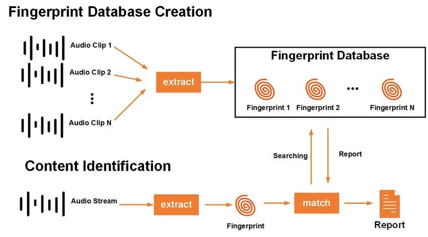 在数字化音乐传播成为主流的今天,AI采样识别就是一项重要的版权保护工具,可以有效防止音乐的非法采样。据一项调查显示,仅在Spotify平台上,2019年就有逾40,000首歌曲被发现存在采样侵权的情况。因此,对于音乐公司和音乐平台来说,利用音频指纹识别技术对音乐进行检查成为了非常必要的环节,就如同学术论文的查重流程。