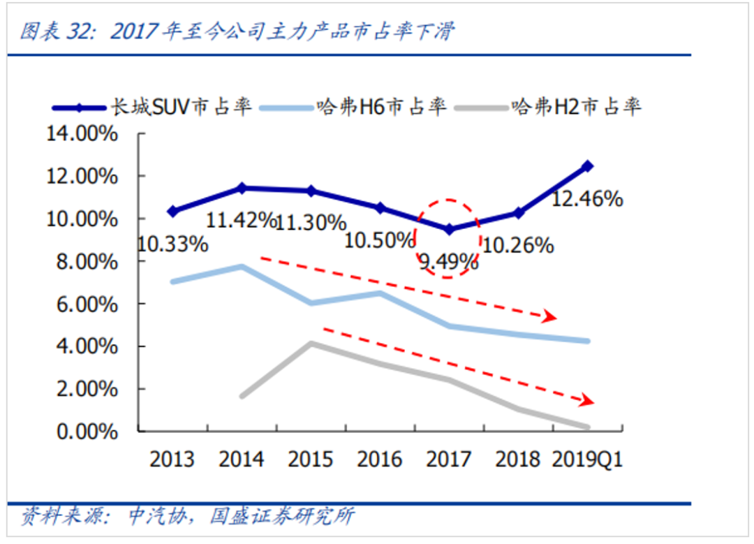 再看当年的长城,在SUV的市场份额同样超过了10%。