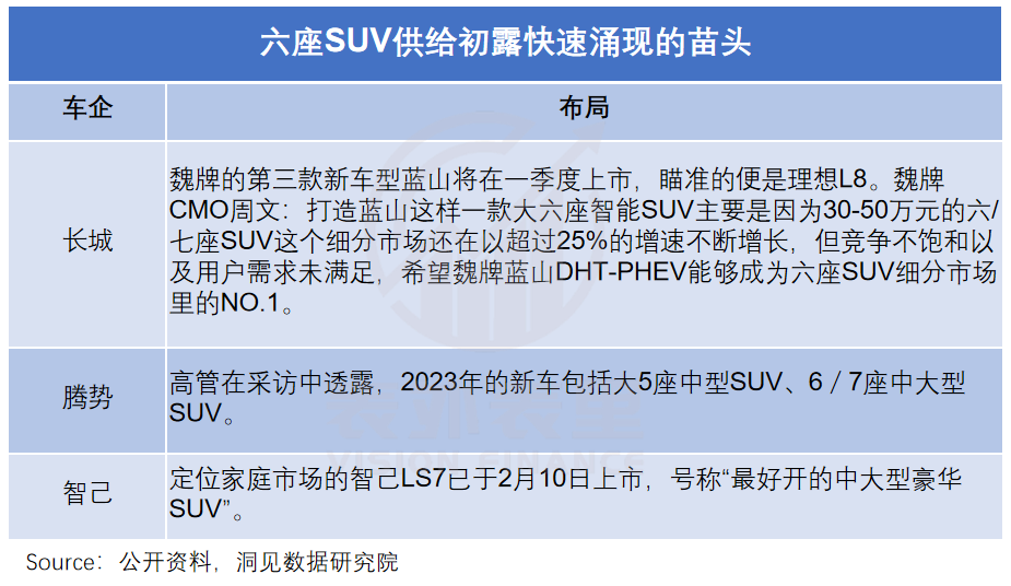 和哈弗H6类似,理想ONE最初进入相对空白的六座中大型SUV市场,同样因时间差赢得了竞争优势。