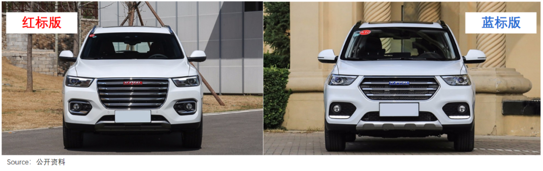 哈弗H6的红标车型定位主流家用人群,体现的是豪华和经典;蓝标车型号称炫酷、时尚,瞄准年轻消费群体。