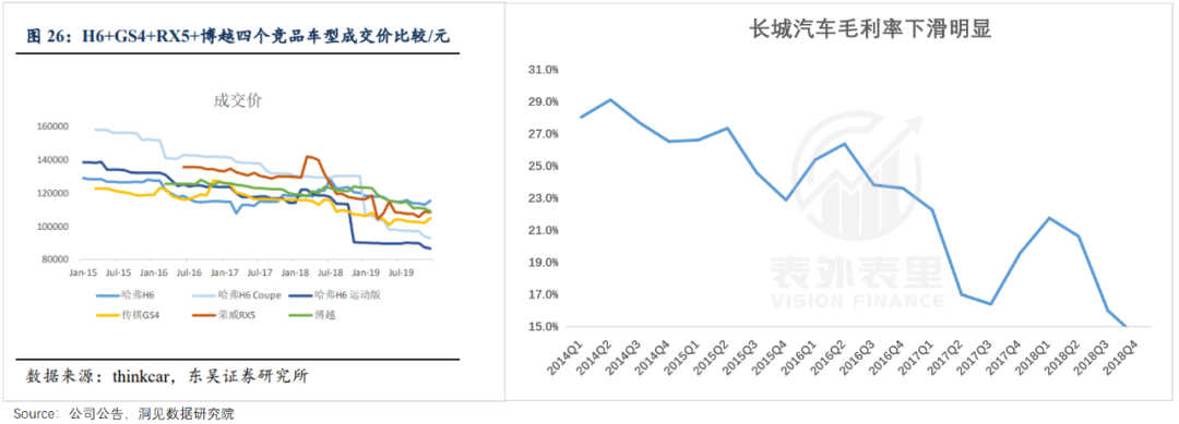 哈弗一直厮杀到2018年底,落了个“伤人一千,自损八百”的结果:市占率下降明显,同时拖累了长城的销售毛利率。