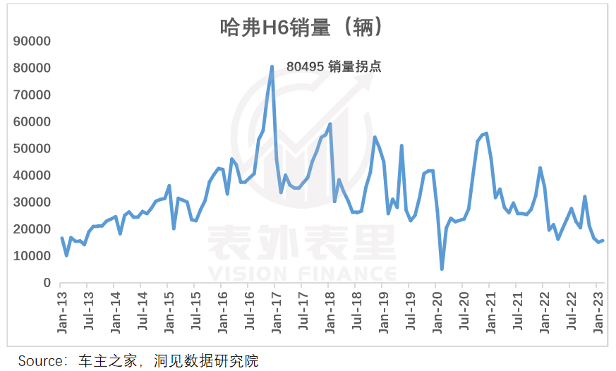 高度的相似性,让销量本就吃力的哈弗H6,月均销量从2016巅峰的8万辆,一路降至2018年的3万辆。