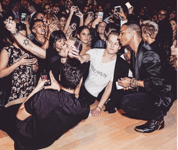 而作为社交媒体之星的Olivier Rousteing,凭借自己的活跃度与诸如Kanye West、Kim Kardashian,Rihanna等当红明星的热络(他将与自己要好的明星都称之为#BalmainArmy),令Balmain也同样成为Instagram、Snapchat等平台上的热门品牌。而对于Balmain这样的传统时装屋而言,如此热衷拥抱社交及数字媒体的举动并不常见,但Olivier Rousteing却成功地说服了该品牌的高层:“以前人们总是怀疑时装和数字平台是否真的匹配,但如今你不仅要面对现有的客群,还要能够影响那些可能暂时无力购买的人群——能和一群人产生交流固然好,但若是能和整个世界都发生互动,岂不是更好?”