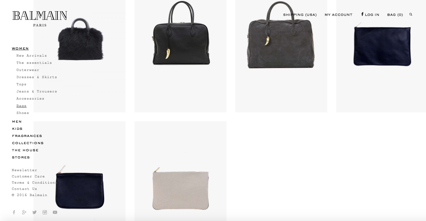 在对谈中,Olivier Rousteing表示自己将会加大配饰方面的开发力度:“Balmain是奢侈界的代表,同时售价也很高昂,但我同样很关注那些没有能力购买我们高级成衣作品的顾客,所以我很明确要扩充现有的配饰产品线。”相比成衣线,Balmain的配饰系列的确逊色不少,尤其是最具利润空间的包款产品——在其官方网站中,在售的包袋款式较为单一,从约合人民币2300元的皮质手拿包到38000余元的麂皮手提袋,仅有总计6款。而在上个月的举办的2017巴黎春夏时装周上,Balmain的新秀虽然推出了81套新装,但却难觅手袋的踪影:没有一个模特的手上有拿着提包。