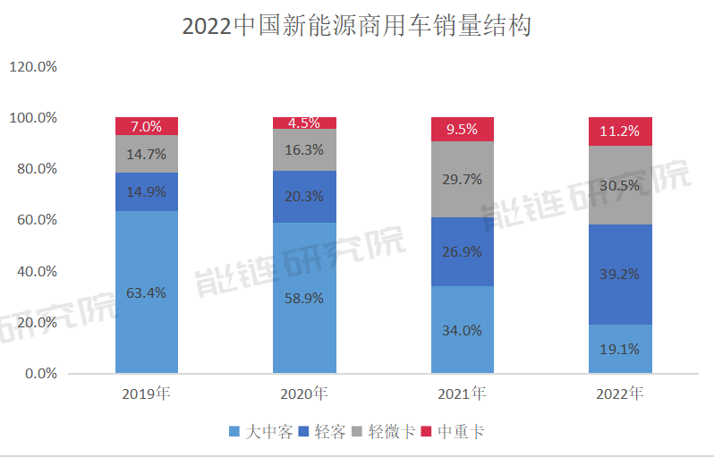 从2019年到2022年,新能源商用车的渗透率从1%增长到10%以上。