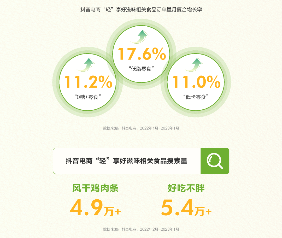“轻”享好滋味趋势市场表现,图片来源:《2023抖音电商健康轻食趋势报告》