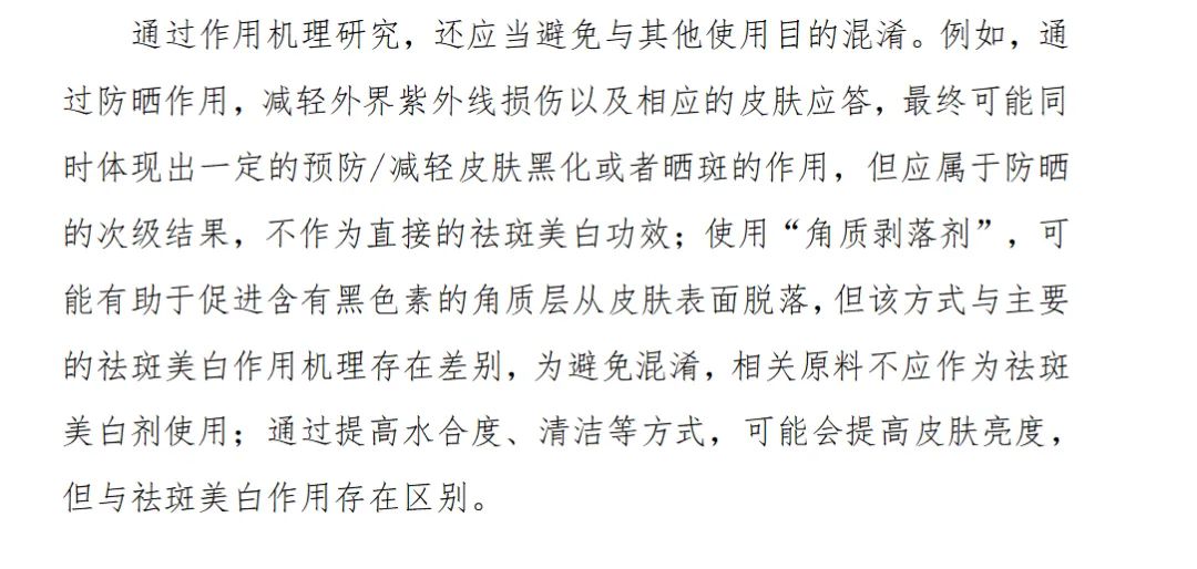 一位不愿具名的化妆品原料专业人士表示,“总的来说,这是对美白祛斑类化妆品的研制、安全、功效评价,生产制造及质量监管的指导性细化文件。其中也重点回答了如果依靠保湿,去角质,防晒等方式获得美白功效,是否可以宣称美白祛斑等疑问。”