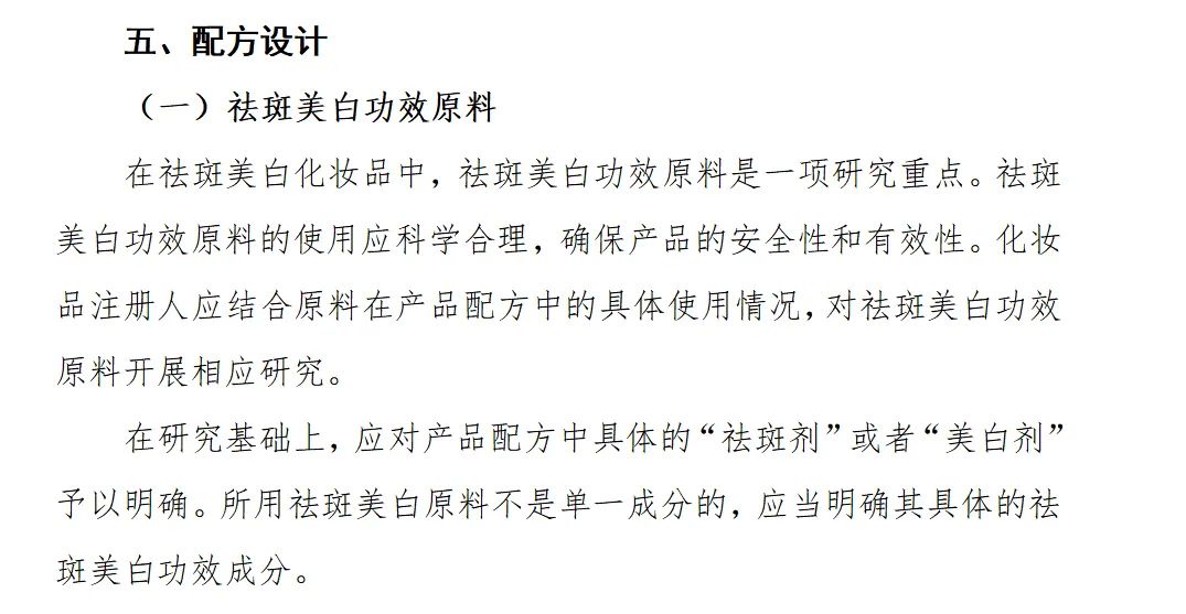 有研发工程师认为,“这是在强调,企业在配方设计时,就得保证祛斑美白产品中必须要有相对应的祛斑剂或者美白剂,或是具体的祛斑美容功效,实际也就是‘言之有物’。”