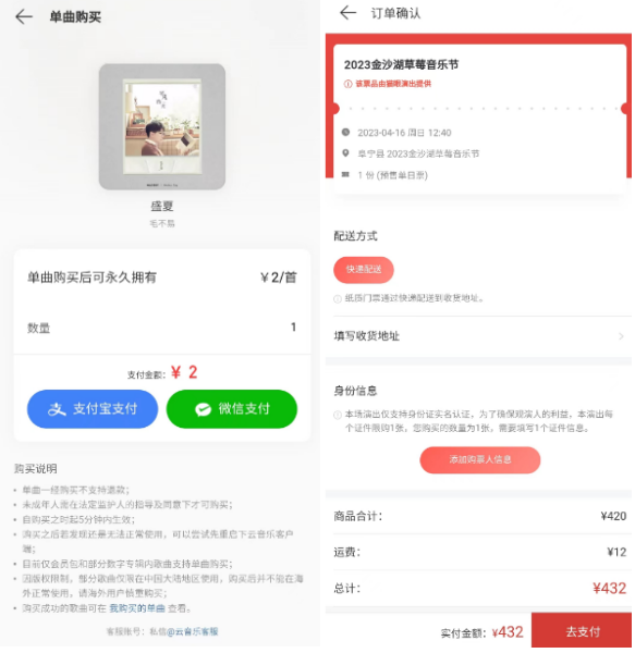 比如支付功能,普通模式下手机里、APP里的支付入口无处不在,青少年模式开启之后也极有可能存在一些漏网之鱼。网易云音乐就再次失守,其关闭了直播、购买数字专辑等比较明显的支付入口,但是单曲购买以及评论区内的票务广告仍能照常支付。