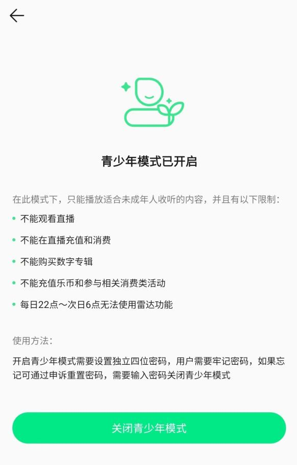比如QQ音乐的青少年模式页面就有写明,不能购买数字专辑,不能在直播充值和消费以及不能参与一些其他的消费活动。