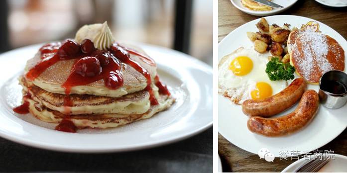 松饼与培根、煎蛋、香肠、土豆,蘑菇的组合是地道的美式Brunch(早午餐)吃法,如今松饼和Brunch已经成为沪上潮流,Mr.Pancake,这个以松饼为主打、Brunch为特色的西餐厅也已经是6年10店的业界标杆。