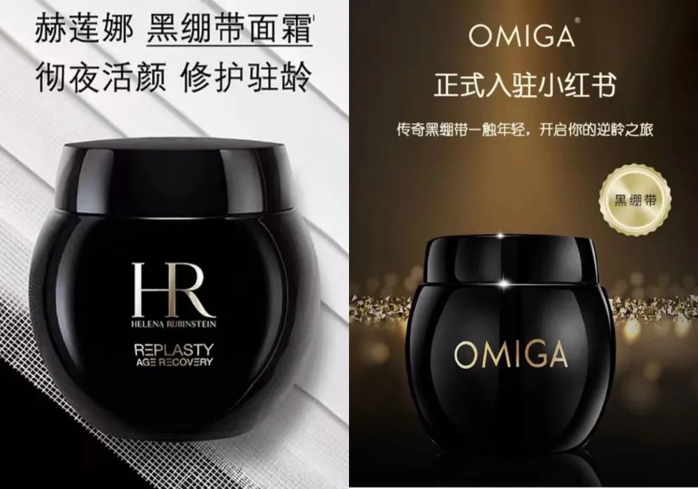去年,在小红书上,一个名为“JDXMH润诺姿”的品牌发布了一款名为“时光御龄精华霜”的产品,不少消费者发现这款产品的外型与高端护肤妆品牌赫莲娜的明星产品黑绷带面霜极为相似。