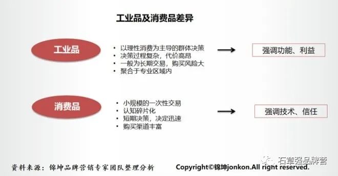 工业品和消费品在品牌的塑造上实际存在着巨大的区别:消费品大多是小规模一次性交易,因此消费品牌的营销大多围绕着用大量信息快准狠地打入消费者痛点;工业品则是以理性消费为主导的群体决策,购买风险大,因此长期以来依赖销售、展会等手段进行营销。随着互联网的作用不断凸显和数字经济的产业化渗透,消费品牌为工业品牌提供了新玩法,工业企业也开始了自己的品牌建设之路。