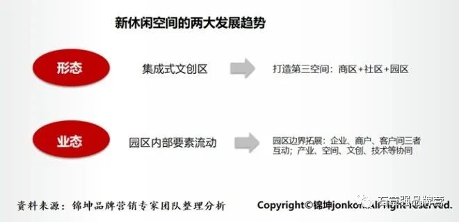 从新休闲空间来看,形态、业态上的突破成为未来发展的新方向。一方面,新休闲空间将凸显自身的开放性和功能性,促使商区、社区、园区、校区“四区融合”,让消费者多层次需求都能取得满足;另一方面,多维度的文创聚合能够为文创科创工创园区丰富内部生态,让商户、客户、企业之间形成良好互动,从而诞生多种形式的业态。