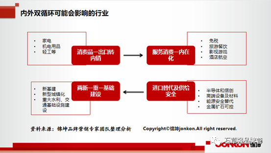 中国长期以来的发展依赖于外循环,让中国在升级到高端制造业的道路上相对顺利,并开始向技术密集型跨越。但是国际环境变化莫测,在当前的形势下,外循环已经不能完全满足发展的需要,并存在着较大风险。因此,内部流通为主、两个流通共同发展的大经济战略正为中国企业应对当下发展环境、寻求进一步升级的现状提供了解决之道。