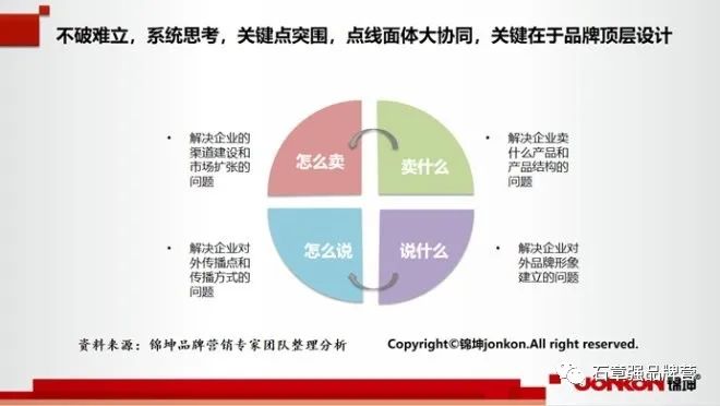 在这种情况下,贯彻“专精特新”也能很好地解决中小企业的品牌顶层设计问题。品牌顶层设计上的“四么”就是解决品牌卖什么、说什么、怎么说和怎么卖。卖什么是解决到底卖什么产品的问题,即企业的核心产品和产品结构是什么,说什么是解决品牌核心价值和品牌卖点的问题,怎么说是解决品牌传播点和传播方式的问题,怎么卖是解决售卖渠道和售卖区域的问题。“专精特新”正是回应了品牌顶层设计的“卖什么”和“说什么”,成为未来企业发展的新常态。