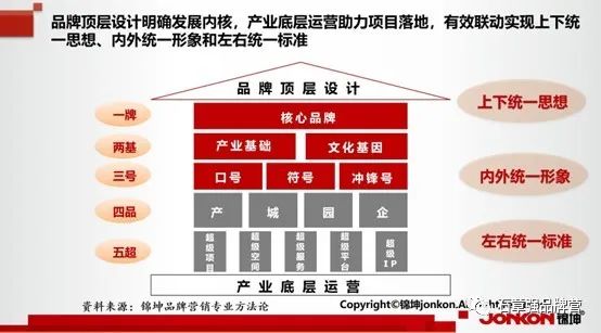 城市品牌的打造,最关键的便明确“一牌”(品牌),立足“两基”(产业基础与文化基因),形成“三号”(符号、口号、冲锋号),落实“四品”(产业品牌、城市品牌、园区品牌、企业品牌),再进一步往下,就是“五超“的落地化实现(即超级项目、超级空间、超级平台、超级服务和超级IP)。在明确了城市品牌的顶层设计后,将其落地跑通产业底层运营,是将产城园企各品牌做大、做强的关键。
