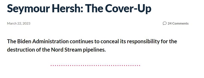 指责美国总统拜登亲自下令袭击北溪天然气管道的普利策奖得主、美国资深调查记者赫什 (Seymour Hersh)发布新文章,为北溪管道事件再蒙上疑云。