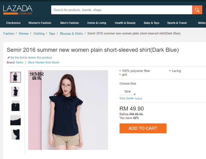 2016年9月13日,有着20年历史的本土知名服装企业浙江森马服饰股份有限公司试水跨境电商,旗下休闲服装品牌“Semir”入驻东南亚地区最大的电子商务Lazada,希望借助这个刚刚接手阿里巴巴10美元战略投资,拥有800万注册会员,日均访问量500万人次的电商新秀,打开5.5亿人口的东南亚市场。