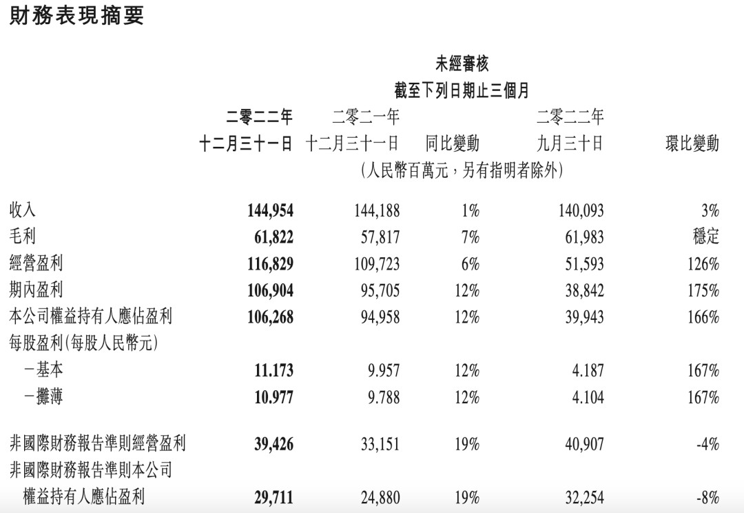看似不那么亮眼,但分季度来看,Q4翘尾明显,表现超过全年,经营利润迎来双位数高增长。