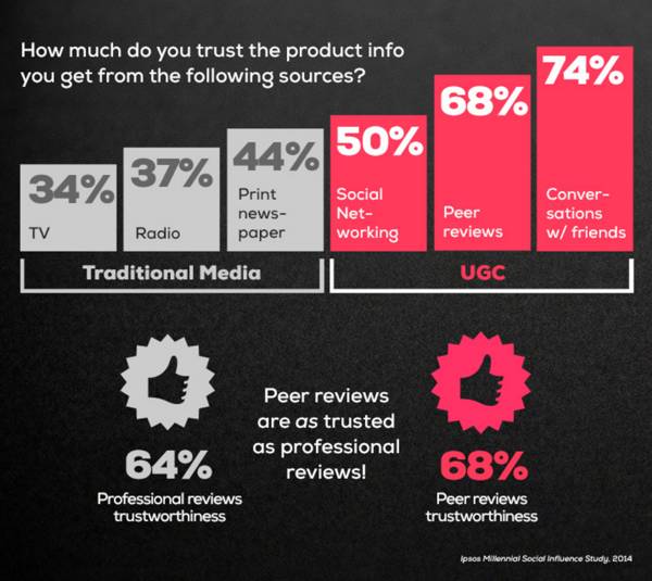人们对于虚假的东西有一种天生的识别并选择屏蔽的能力。从Facebook和Instagram这两个当下最受欢迎的社交平台上用户的反应来看,用户对朋友和亲人提供有关某种产品的建议具有非常高的信任度。因此,用户生产出的内容往往也更加亲民。