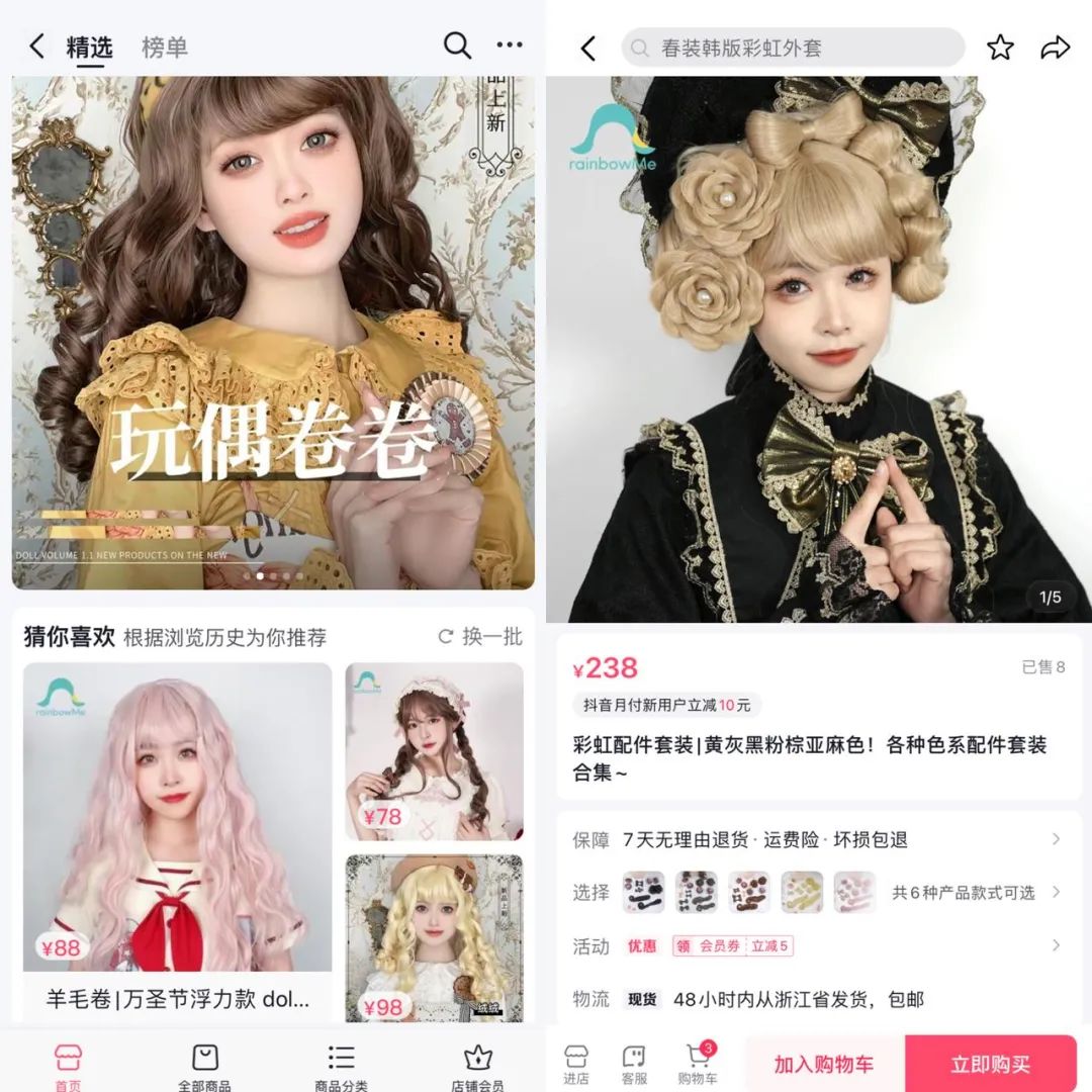 抓住三坑少女垂直用户,并提供全套潮流假发产品,是rainbowMe在抖音成功崛起的秘籍。