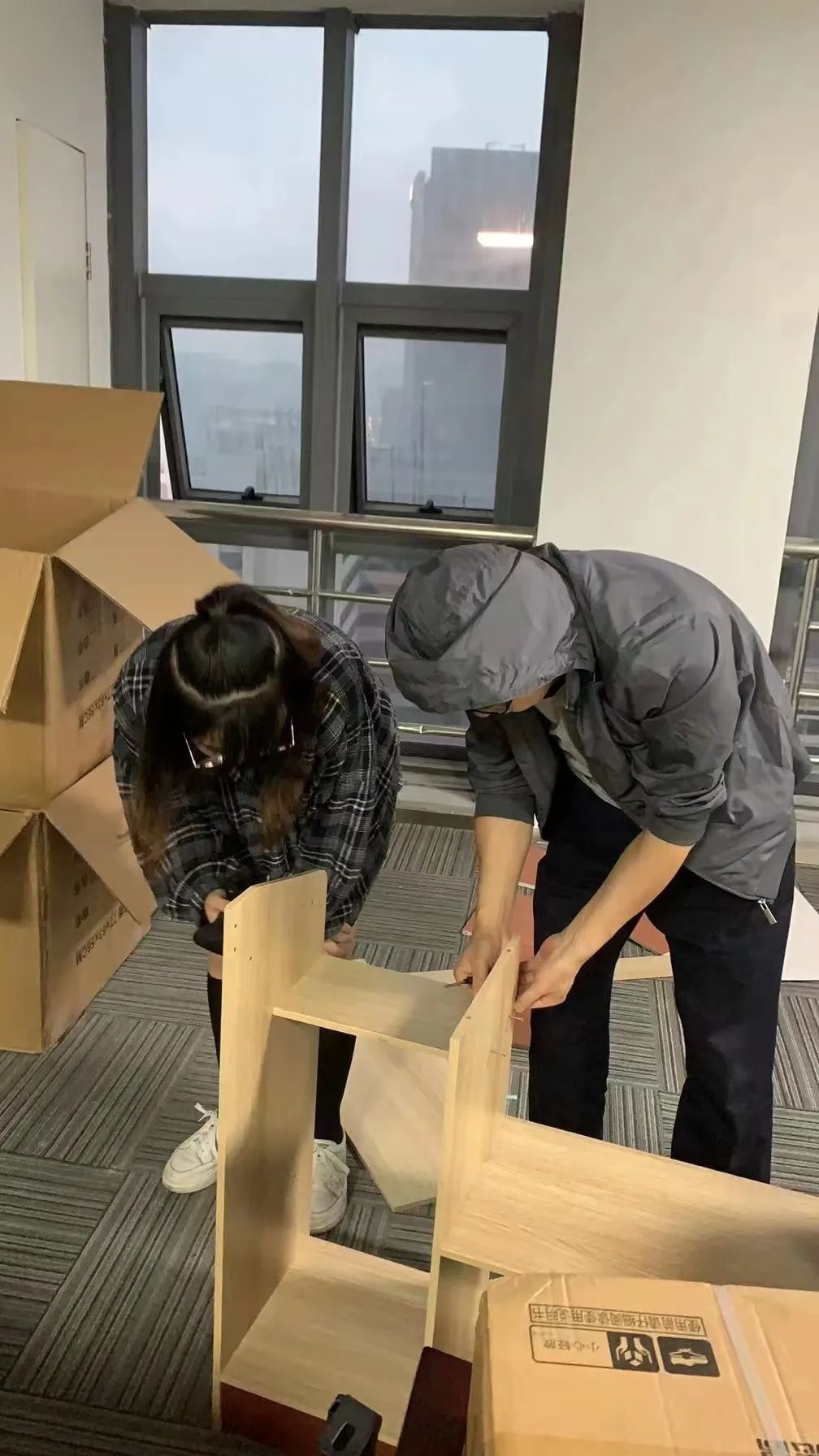 ▲ 小李的父亲帮忙组装棋牌室的柜子。图 / 受访者提供