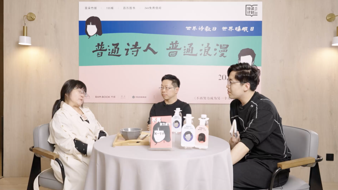 日前,在世界读诗日,亚朵邀请诗人余秀华、胡桑、B站UP 主江湖举人、作家王恺等人来到酒店,一起探讨B站用户的共创诗集《不再努力成为另一个人》。