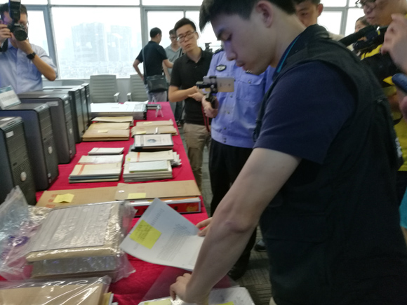(深圳警方展示缴获的涉案物品。摄影/梁宙)