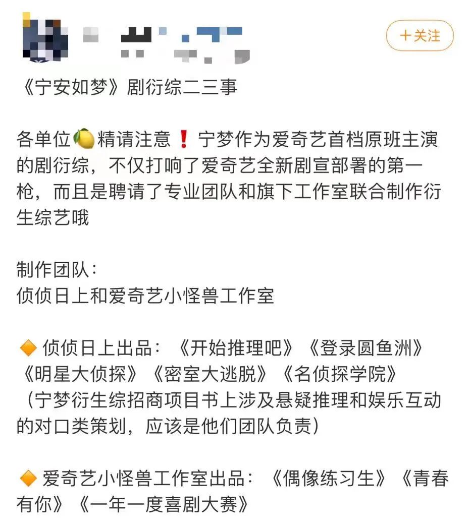 同样,爱奇艺借《宁安如梦》推出的《100万个约定》,如果播出效果好,与剧集联动紧密。未来成为平台独立的综艺IP,作为各大剧集宣发的新阵地,变成平台的“通告综艺”也并不是不可能的。