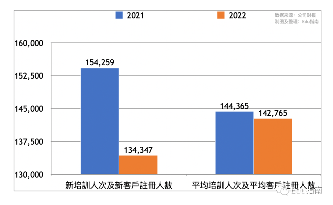 本财年中国东方教育公司新培训人次及新客户注册人数为13.4万,而上一财年同期为15.4万,本财年相较减少13%。该公司2022财年平均培训人次及平均客户注册人数为14.3万,而上一财年为14.4万,本财年该项减少1%。