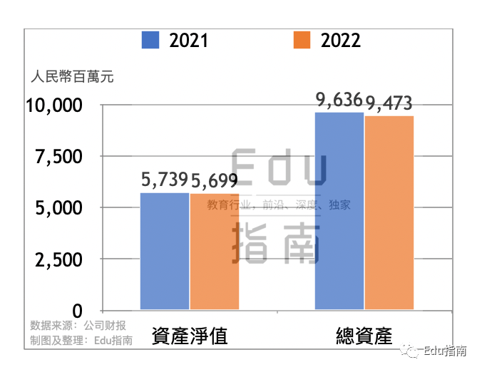 该公司2022财年资产净值为57.0亿元,上一财年为57.4亿元,本财年该项减少0.7%。本财年该公司总资产额为94.7亿元,相较上一财年同期的96.4亿元,减少1.7%。