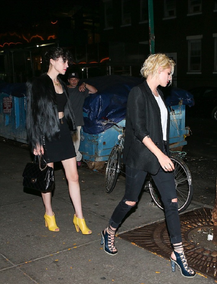 有人看到她们一起坐在贵宾席上喝着卡特签名鸡尾酒(Cut's signature cocktail)看上去十分陶醉。她们吃着迷你牛肉三明治和其他小食。很快,斯图尔特的朋友在《暮光之城》合作过的目前又出演最近电影的达科塔·范加入了她们,拉塞尔·西蒙斯也加入了进来,他被看见一边喝着酒一边牵着一个女性朋友。