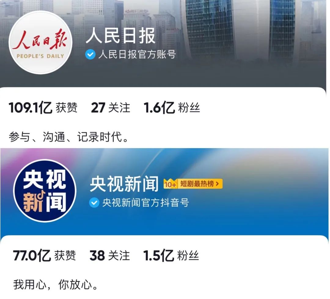 这一系列内容,曾是电视台的主旋律。用户在电视台接受娱乐内容的同时,往往也需要接受并了解相关的时政新闻。新的大众媒介的崛起,则促成了这种内容的平移。显然,无论是发布新闻内容的账号本身,还是作为平台方的抖音快手乃至B站,都乐于见到这种状况。