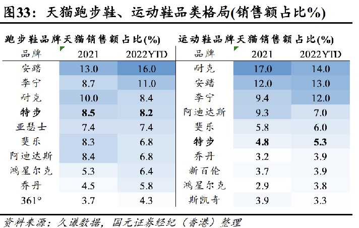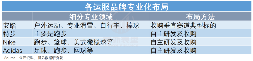 而经过之前的研发转化,特步在跑步赛道,建立起了一定的专业品牌度;安踏也通过收购垂直赛道标的如迪桑特,保持领先。