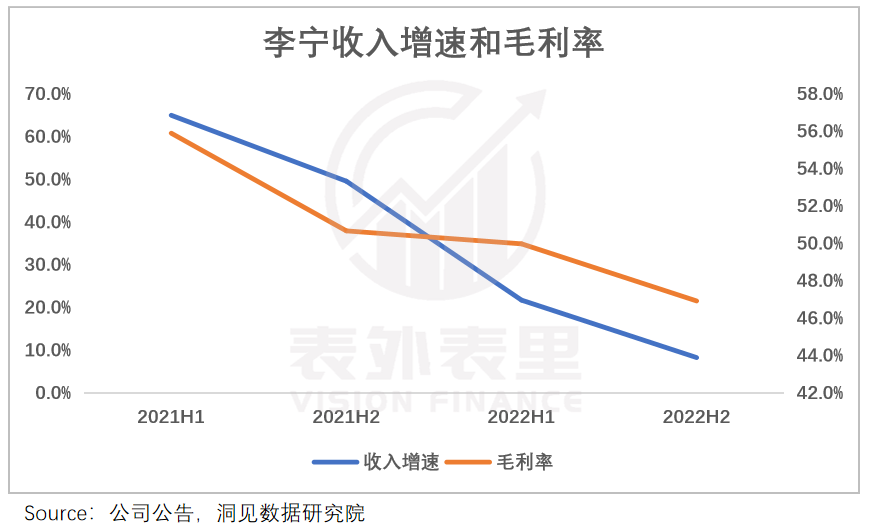 而从结果来看,Lululemon的收入确实在随着库存增加而增长;相比之下,李宁持续下滑的营收增速,有点不够看。