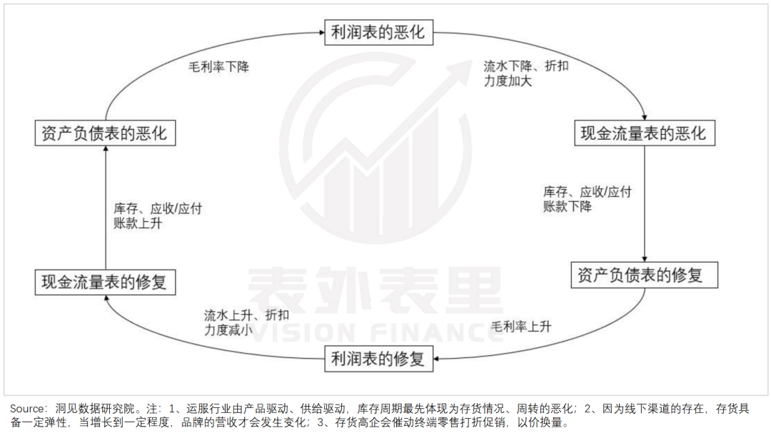 当然,深陷“危机”的不止李宁一家,《李宁安踏的“降价潮”》一文论述过,整个运服行业都面临“周期劫”,并且已进入利润表恶化阶段,只有改善库存才能进入修复阶段。