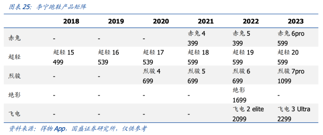 不仅如此,李宁自己也不断涨价。以其跑鞋为例,每一次新品推出,价格都有一定上涨。
